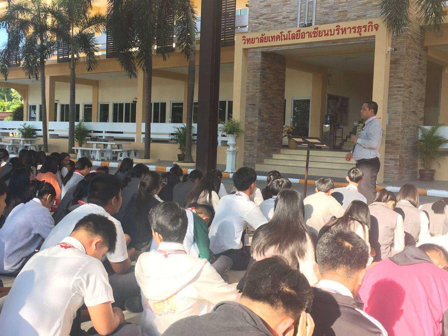 อาจารย์ปราโมทย์ กล้าหาญ ผู้รับใบอนุญาต วิทยาลัยฯ เข้าร่วมกิจกรรมช่วงเช้าพบกับนักเรียน นักศึกษา กล่าวทักทายบอกเล่าทิศทางนโยบายการบริหารวิทยาลัยฯ และกล่าวให้พรแก่ลูกๆ อาเซียน ณ วิทยาลัยเทคโนโลยีิาเซียนบริหารธุรกิจ (2 พ.ย. 61) S:1