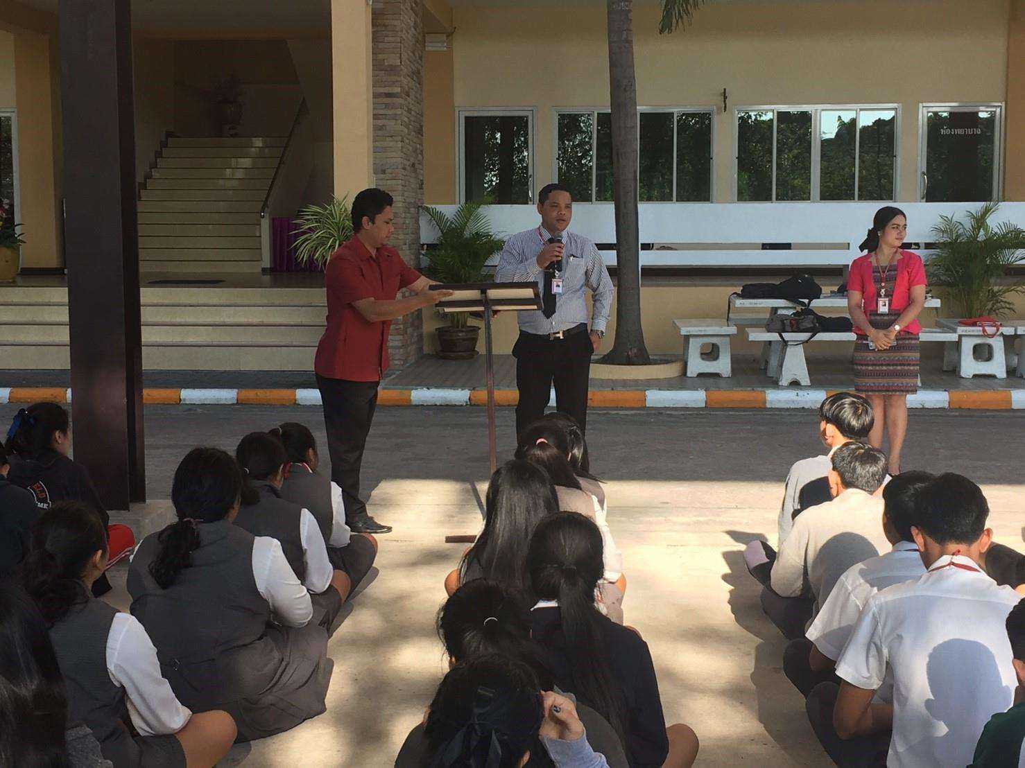 อาจารย์ปราโมทย์ กล้าหาญ ผู้รับใบอนุญาต วิทยาลัยฯ เข้าร่วมกิจกรรมช่วงเช้าพบกับนักเรียน นักศึกษา กล่าวทักทายบอกเล่าทิศทางนโยบายการบริหารวิทยาลัยฯ และกล่าวให้พรแก่ลูกๆ อาเซียน ณ วิทยาลัยเทคโนโลยีิาเซียนบ