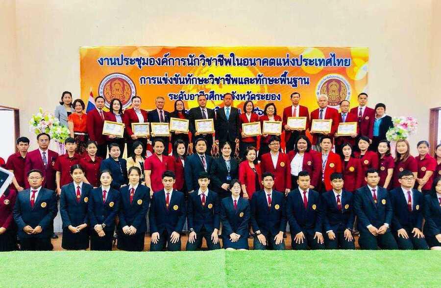 คณะผู้บริหาร วิทยาลัยเทคโนโลยีอาเซียนบริหารธุรกิจ เข้าร่วมพิธีเปิดงานประชุมวิชาการองค์การนักวิชาชีพในอนาคตแห่งประเทศไทยการแข่งขันทักษะวิชาชีพทักษะพื้นฐานและหลักสูตรระยะสั้นระดับอาชีวศึกษาจังหวัดระยองป