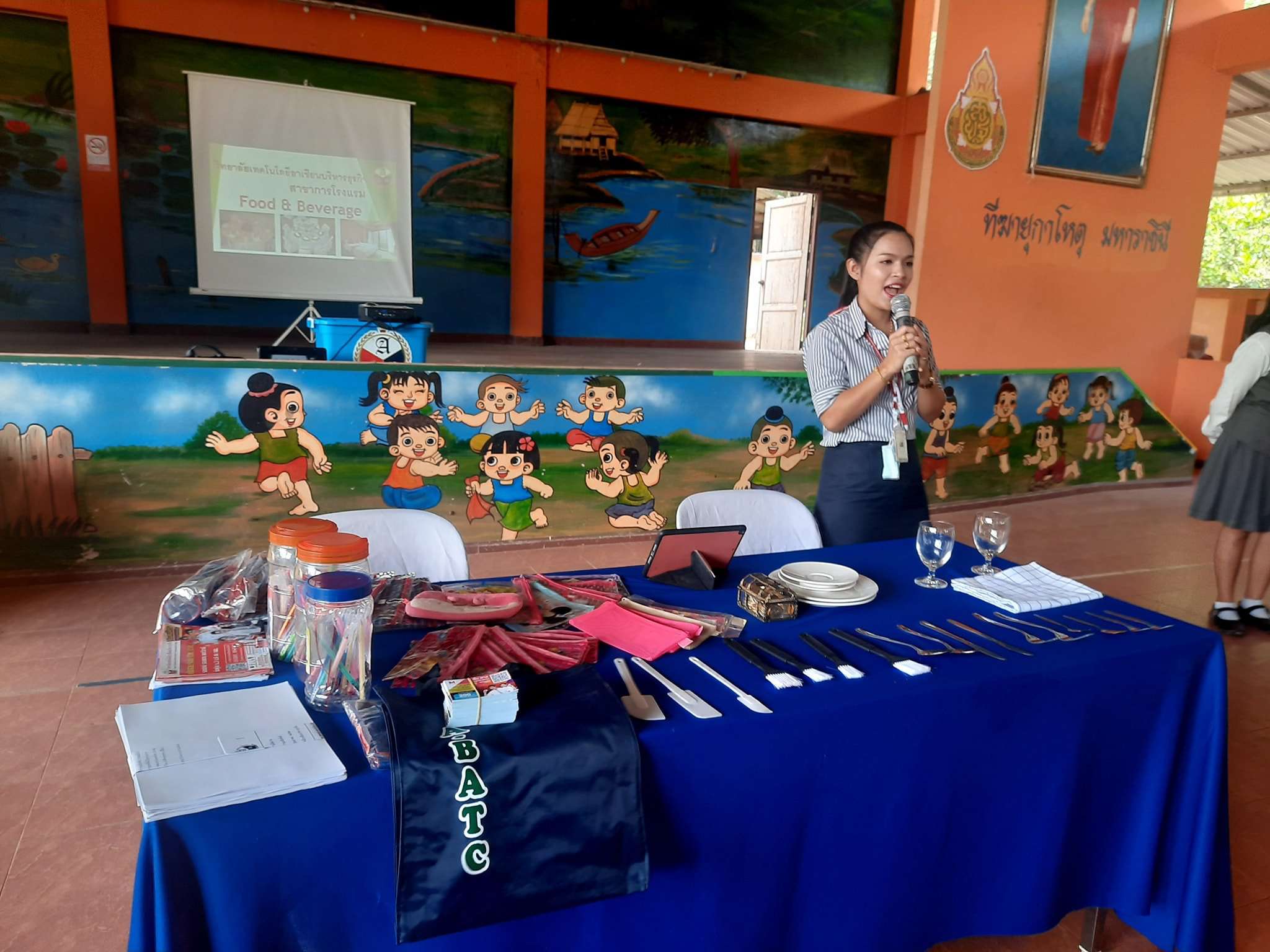 เมื่อวันที่ 16 กันยายน 2563 คณะครู อาจารย์ นำนักเรียน นักศึกษา สาขาการโรงแรม วิทยาลัยเทคโนโลยีอาเซียนบริหารธุรกิจ เดินทางไปบรรยายเชิงปฏิบัติการในโครงการบริการวิชาการและวิชาชีพ ประจำปีการศึกษา 2563 ของสาขาการโรงแรม เรื่อง Food & Beverage ให้กับน้องๆ นักเรียนโรงเรียนบ้านพลงตาเอี่ยม ณ โรงเรียนบ้านพลงตาเอี่ยม เมื่อวันที่ 16 กันยายน 2563 S:1