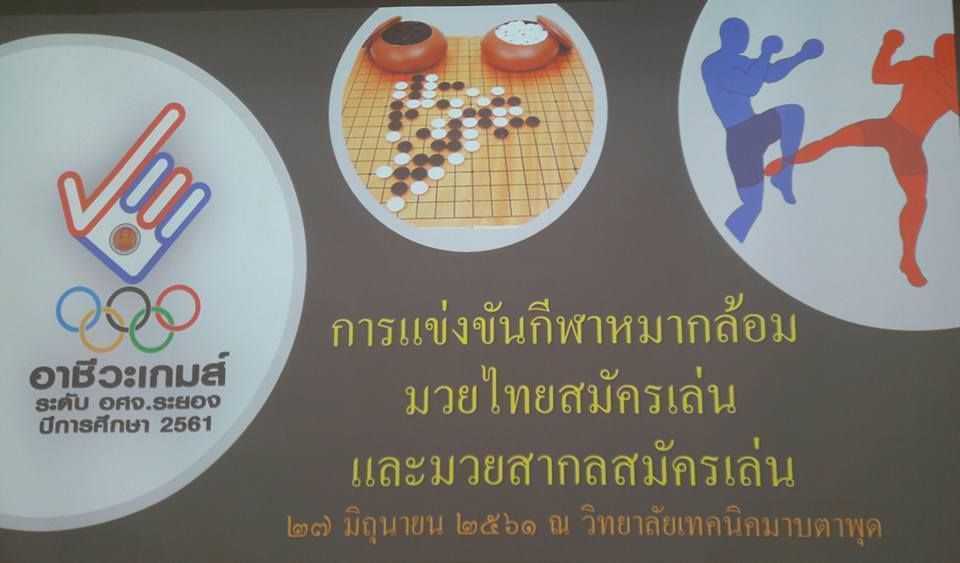 การแข่งขันกีฬาอาชีวะเกมส์ ระดับอาชีวศึกษาจังหวัดระยอง ประจำปีการศึกษา 2561 ประเภทมวยไทยสมัครเล่น และมวยสากลสมัครเล่น ณ สนามมวยวิทยาลัยเทคนิคมาบตาพุต (27 มิ.ย. 61) S:1