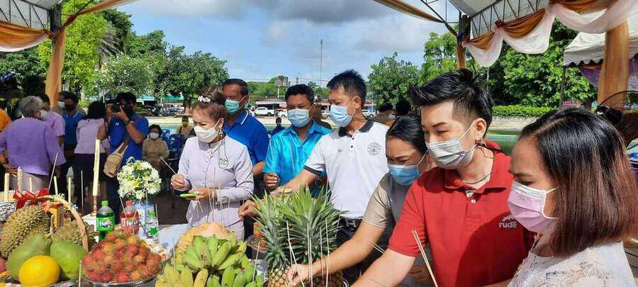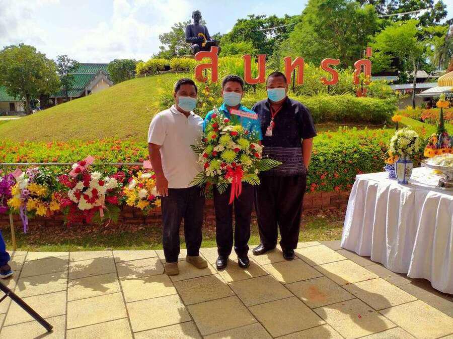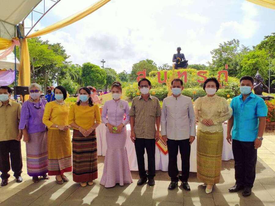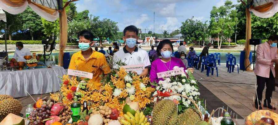 เข้าร่วมพิธีบวงสรวงได้วางพวงมาลาดอกไม้ที่อนุสาวรีย์