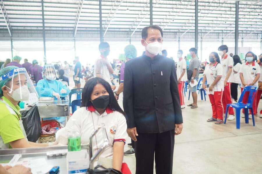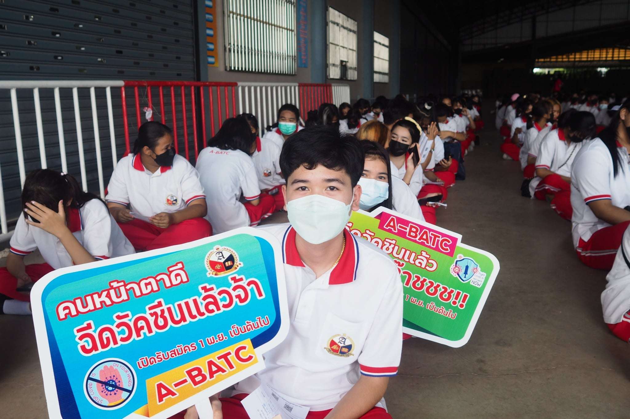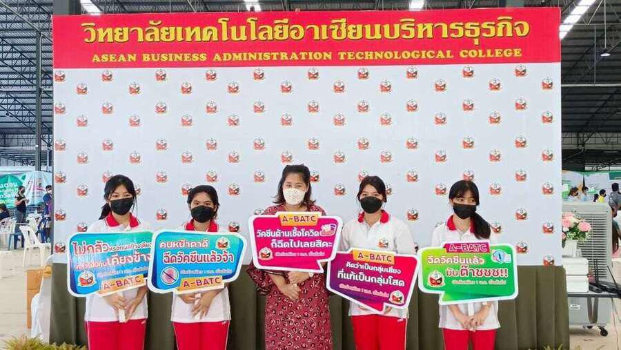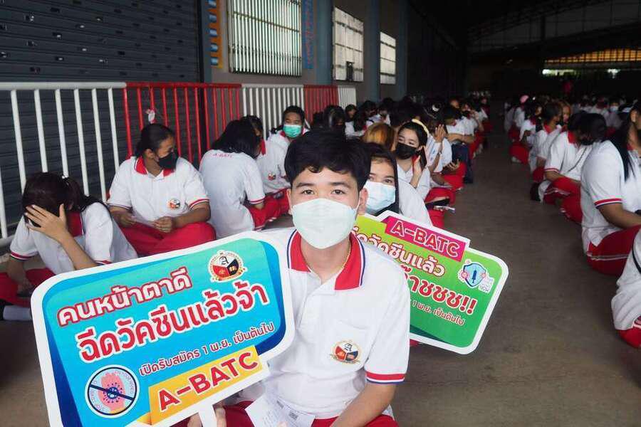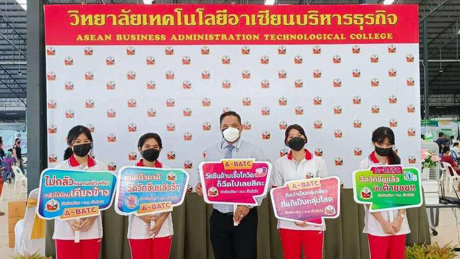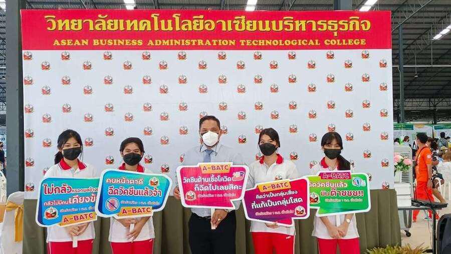 " พิธีการมอบเข็มกลัด A-BATC เพื่อสร้างความเชื่อมั่น ให้แก่นักเรียน นักศึกษาที่รับวัคซีนครบ 2 เข็ม "
