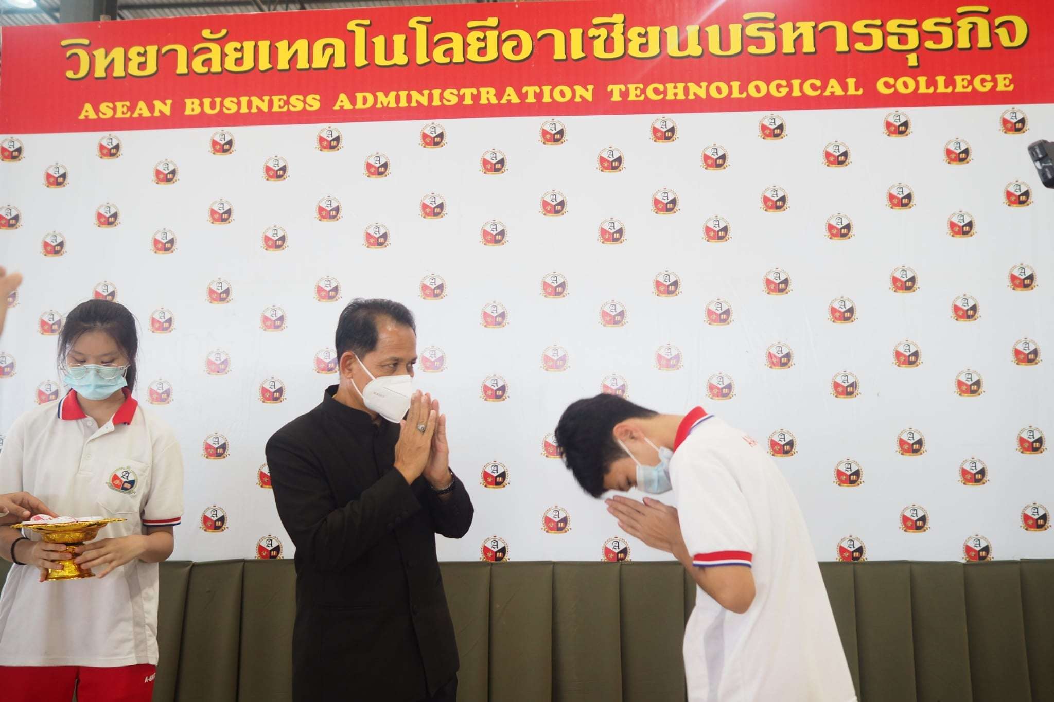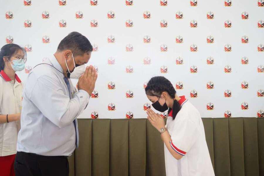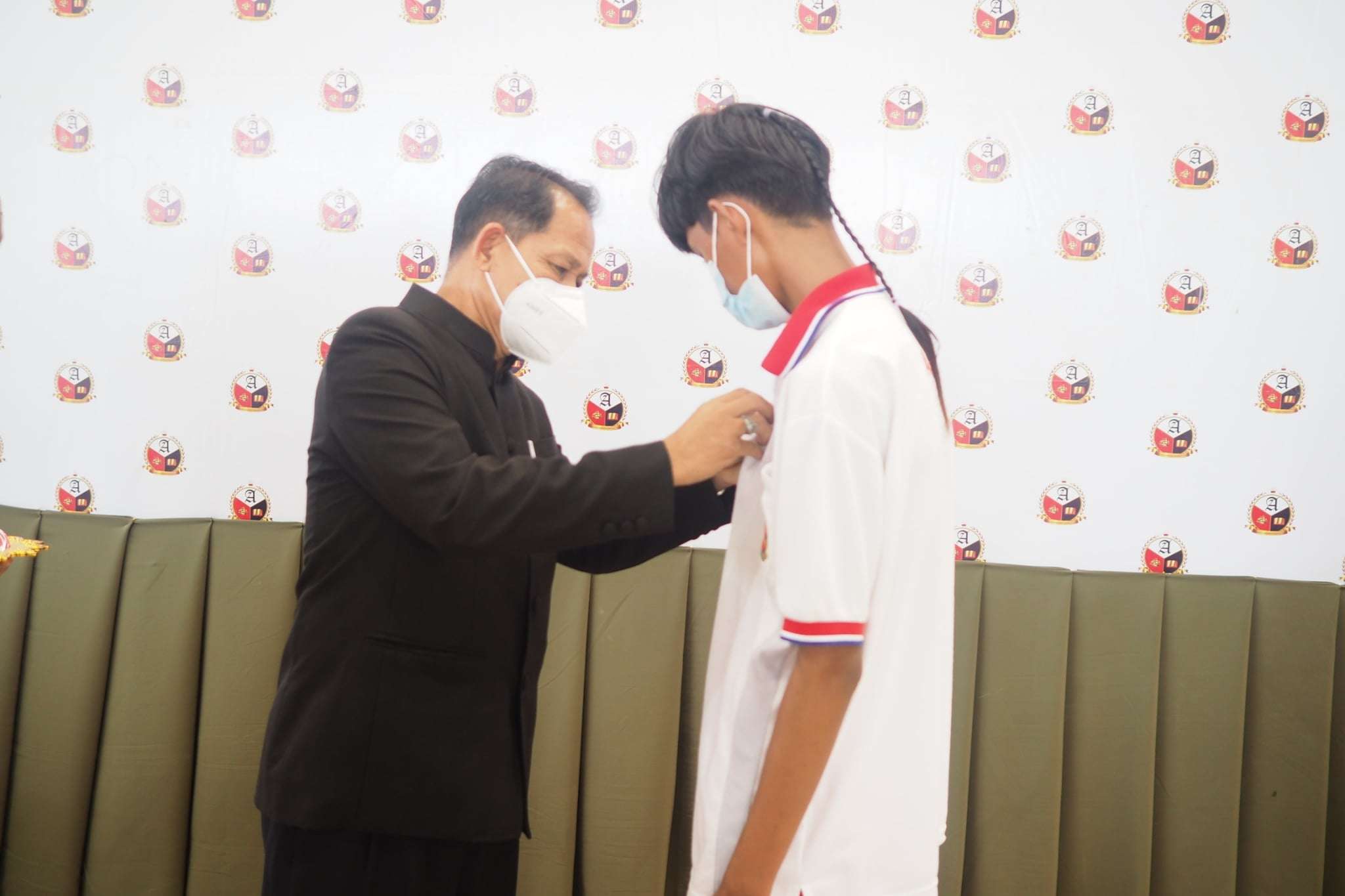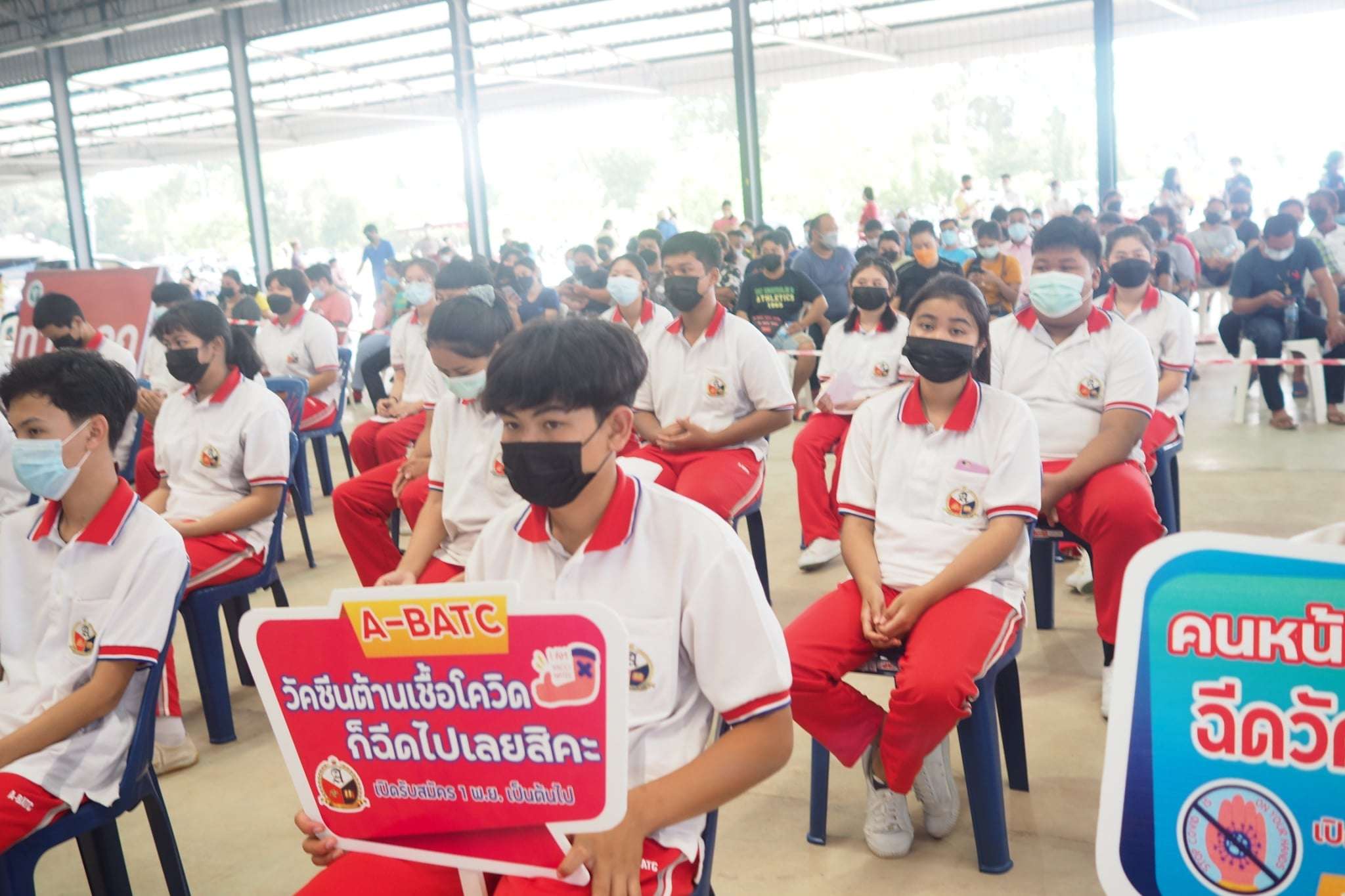 " พิธีการมอบเข็มกลัด A-BATC เพื่อสร้างความเชื่อมั่น ให้แก่นักเรียน นักศึกษาที่รับวัคซีนครบ 2 เข็ม "