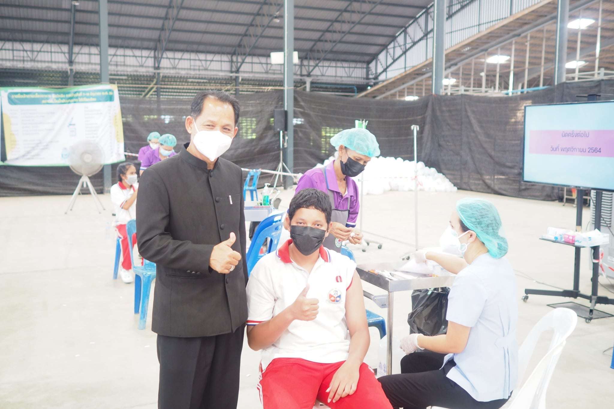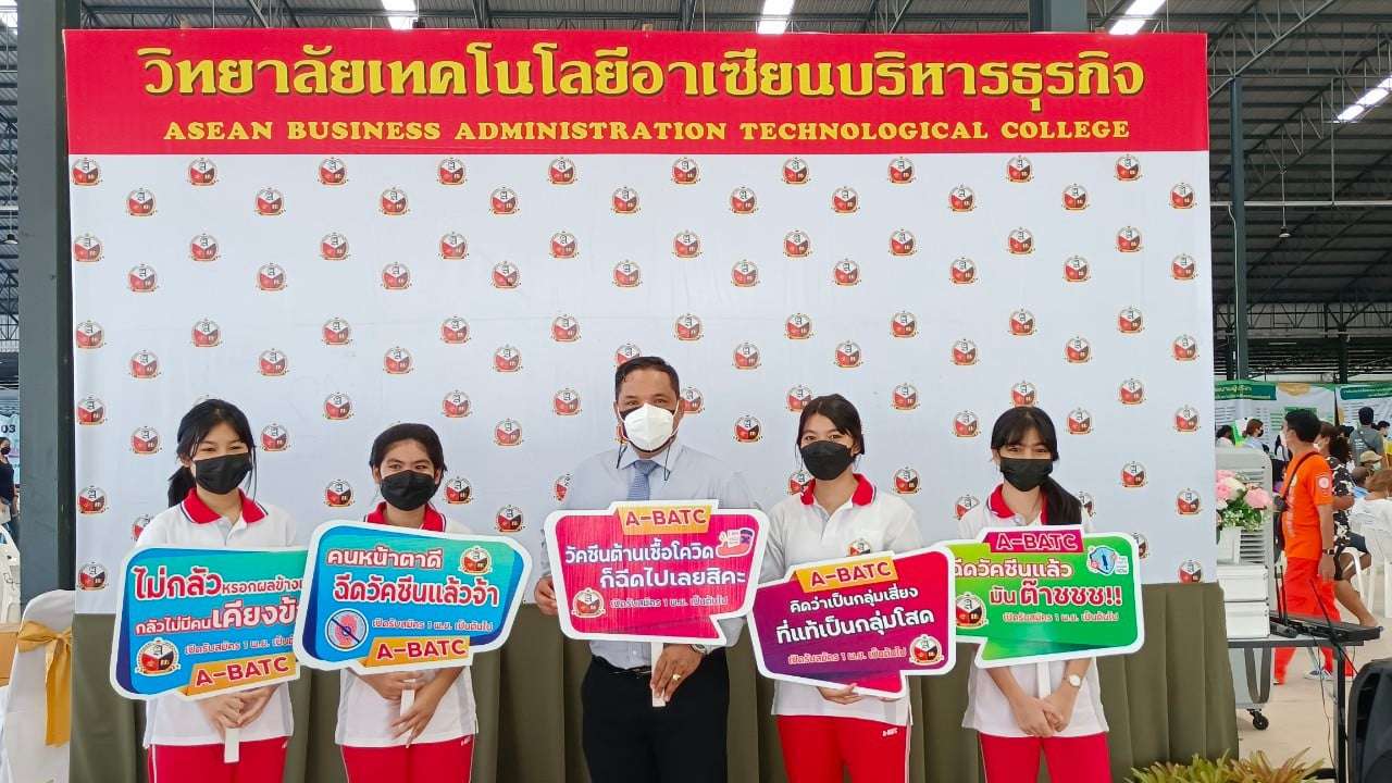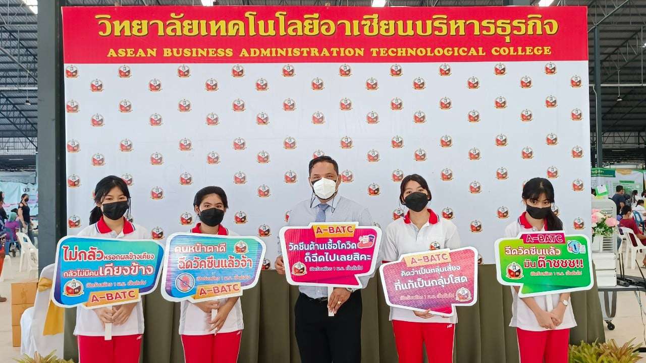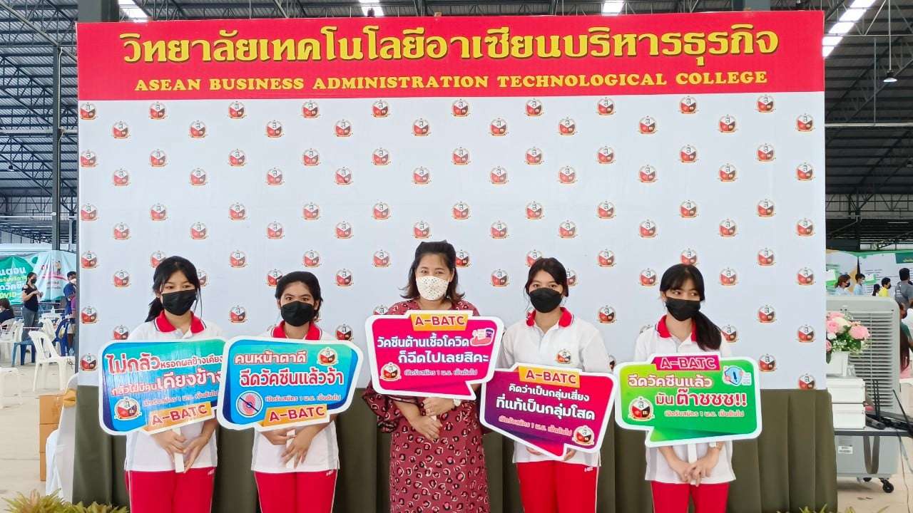 เมื่อเวลา 14 .30 น.วันที่ 2 พ.ย. 64 นายอนุสรณ์ แสงกล้า นายอำเภอแกลง จ.ระยอง ได้เดินทางมาที่ปั๊มบางจาก หจก.ไต๋ปิโตรเลี่ยม เป็นประธานในการมอบเข็มกลัดให้กับนักเรียนที่ได้รับการฉีดวัคซีนครบ 2 เข็ม โดยมี นางสุพรรณิกา ทิพพศรี กล้าหาญ ผอ.วิทยาลัยเทคโนโลยีอาเซียนบริหารธุรกิจ พร้อมด้วย นายปราโมทย์ กล้าหาญ ผู้รับใบอนุญาตวิทยาลัยเทคโนโลยีอาเซียนบริหารธุรกิจ คณะครู อาจารย์ นำนักเรียนที่ฉีดวัคซีนครบ 2 เข็มแล้วมารับมอบเข็มกลัด A - BATC จากนายอนุสรณ์ แสงกล้า นายอำเภอแกลง นายแพทย์ภูษิต ทรัพย์สมพล ผอ.โรงพยาบาลแกลง นายเกียรติศักดิ์ ตั้งเจริญสุทธิชัย (เสี่ยไต๋) ที่ให้ความอนุเคราะห์สถานที่ในการฉีดวัคซีน และนายปราโมทย์ กล้าหาญ ผู้รับใบอนุญาตวิทยาลัย ฯ ร่วมมอบเข็ม เพื่อสร้างความเชื่อมั่นให้กับนักเรียนที่ฉีดวัคซีนครบ 2 เข็มแล้ว นายอำเภอแกลง ได้กล่าวขอบคุณทางโรงเรียนที่ให้ความสำคัญ โดยเฉพาะอย่างยิ่งคือนักเรียนที่เป็นอนาคตของชาติ ที่ได้เห็นสิ่งดี ๆ เหล่านี้ และมาร่วมกิจกรรม พร้อมขอบคุณทุกภาคส่วนที่ให้ความร่วมมือกันเป็นอย่างดี ! S:1