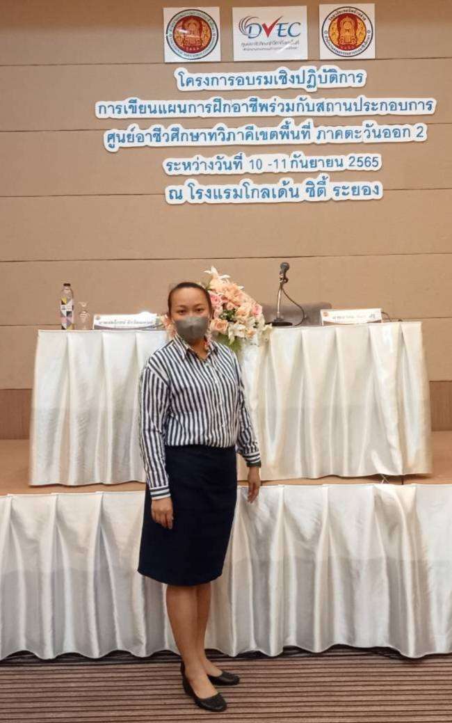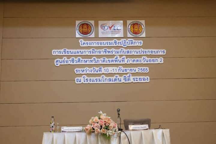 เมื่อวันที่ 10 -11 กันยายน 2565 นางสาวสุนันธินี ล่อเฮง รองผู้อำนวยการฝ่ายบริหารทรัพยากร นางสาวพิมพร โสภา รองผู้อำนวยการฝ่ายวิชาการ นำคณะครู อาจารย์วิทยาลัยเทคโนโลยีอาเซียนบริหารธุรกิจและสถานประกอบการ เข้าร่วมโครงการอบรมเชิงปฏิบัติการ การเขียนแผนการฝึกอาชีพร่วมกับสถานประกอบการ ศูนย์อาชีวศึกษาทวิภาคีเรดพื้นที่ ภาคตะวันออก 2 ณ โรงแรมโกลเด้น ซิตี้ ระยอง S:1