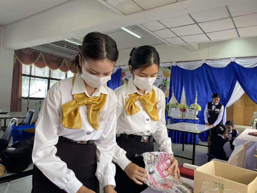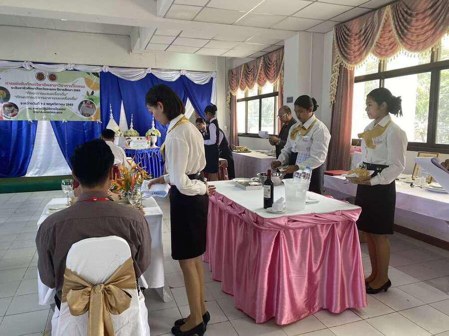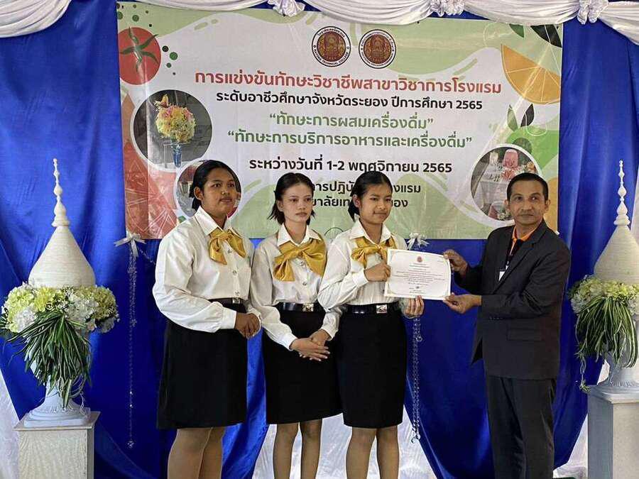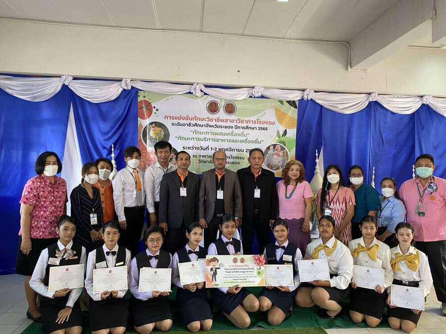 ขอแสดงความยินดีกับ นางสาวมาตา พุฒชงค์ ปวช.2/1 สาขาการโรงแรม นางสาวกชกร สร้อยสีแสง ปวช.2/1 สาขาการโรงแรม นางสาวปาริฉัตร มาลัย ปวช.2/1 สาขาการโรงแรม ได้รับรางวัล ระดับเหรียญเงิน การแข่งขันทักษะด้านการบริการอาหารและเครื่องดื่ม ในงานแข่งขันทักษะวิชาชีพ และทักษะพื้นฐาน ระดับอาชีวศึกษาจังหวัดระยอง ประจำปีการศึกษา 2565 เมื่อวันที่ 1 พฤจิกายน 2565 ณ วิทยาลัยเทคนิคระยอง ควบคุมการฝึกซ้อมโดยอาจารย์ธนศักดิ์ ตั้งทองจิตร S:0