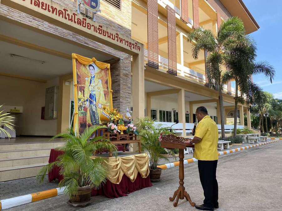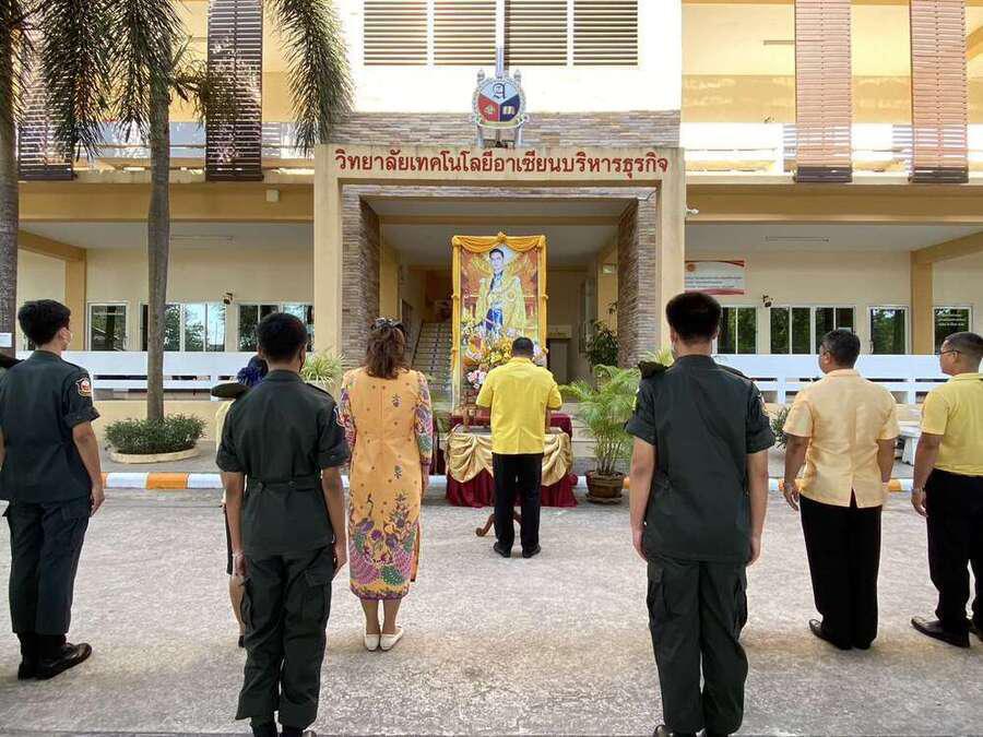 วันที่ 1 ธันวาคม 2565 นายปราโมทย์ กล้าหาญ ผู้รับใบอนุญาตวิทยาลัยเทคโนโลยีอาเซยีนบริหารธุรกิจ ได้เป็นประธานในพิธีถวายพานพุ่มสักการะ เบื้องหน้าพระบรมฉายาลักษณ์ พระบาทสมเด็จพระบรมชนกาธิเบศร มหาภูมิพลอดุลยเดชมหาราช บรมนาถบพิตร และกล่าวถวายราชสดุดีน้อมรำลึกในพระมหากรุณาธิคุณอันหาที่สุดมิได้ ร่วมด้วยนางสุพรรณิกา ทิพพศรี กล้าหาญ ผู้อำนวยการวิทยาลัยเทคโนโลยีอาเซียนบริหารธุรกิจ คณะผู้บริหาร คณะครู นักเรียน นักศึกษา เพื่อแสดงออกถึงความจงรักภักดี ณ ลานอเนกประสงค์วิทยาลัยเทคโนโลยีอาเซียนบริหารธุรกิจ S:0