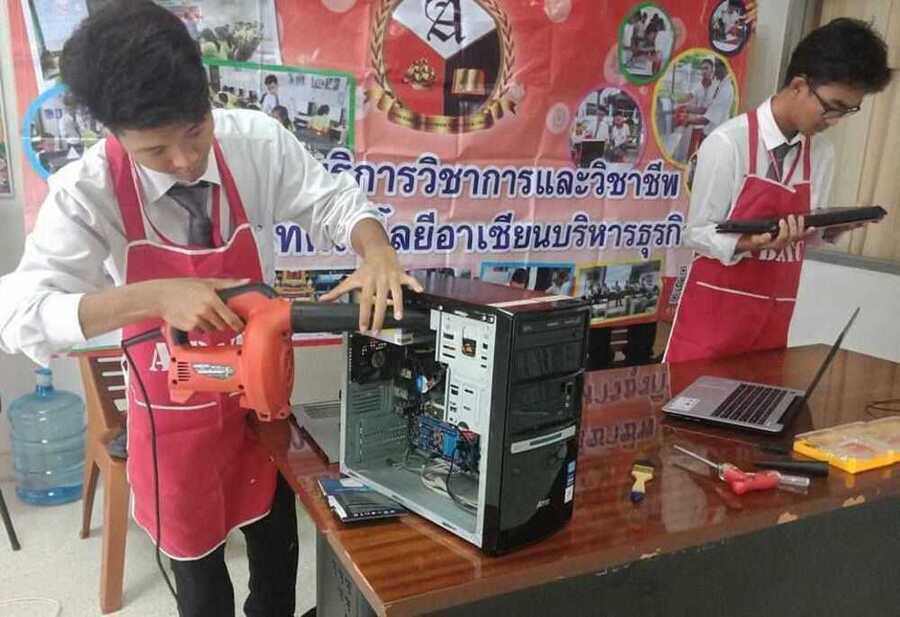 นักเรียน นักศึกษา สาขาคอมพิวเตอร์ธุรกิจ วิทยาลัยเทคโนโลยีอาเซียนบริหารธุรกิจ มีจิตอาสาออกบริการวิชาการวิชาชีพ เนื่องในโครงการบริการวิชาการและวิชาชีพต่อหน่วยงาน องค์กร และชุมชน "กิจกรรมการดูแลบำรุงรักษาคอมพิวเตอร์ (Computer Maintenance)" ณ เทศบาลตำบลทุ่งควายกิน (17 ก.ค. 61) S:0