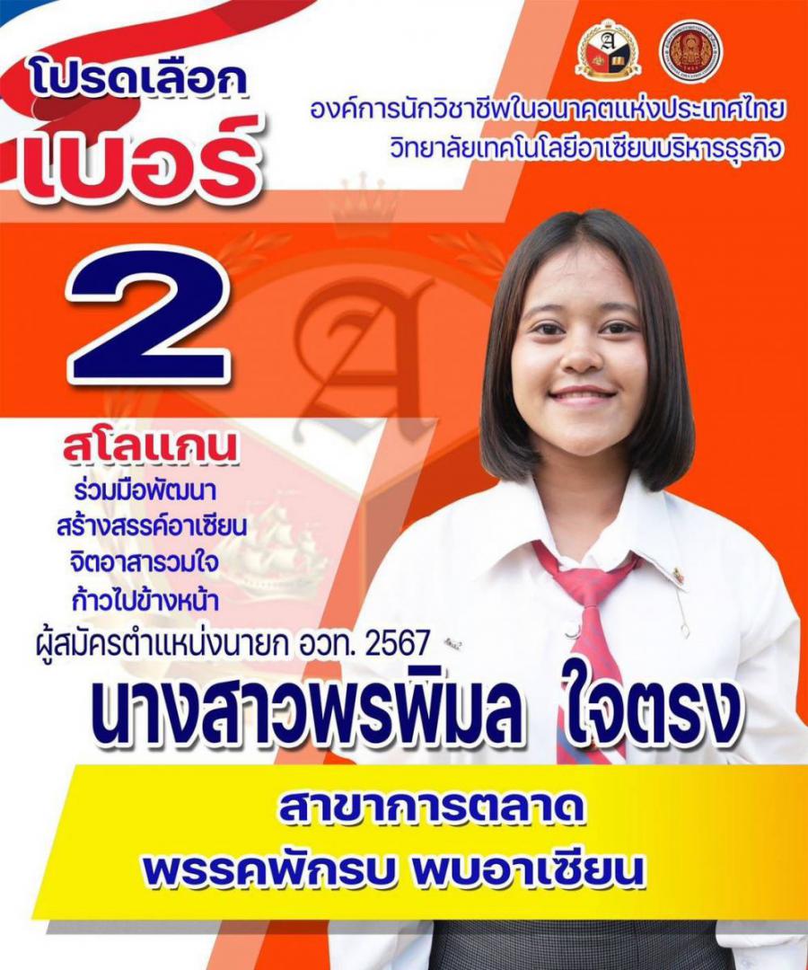 29 สิงหาคมนี้ เข้าคูหา กาเบอร์ที่ใช่ ? เพราะคนใดที่ถูกเจียว จะเป็นคนเดียวที่ถูกใจเราตลอดปี โฉมหน้าผู้ลงสมัคร ?นายกองค์การนักวิชาชีพในอนาคตแห่งประเทศไทย? วิทยาลัยเทคโนโลยีอาเซียนบริหารธุรกิจ ประชาสัมพันธ์ขอเชิญชวนพี่น้องชาว ABATC ทุกคน เข้าคูหา - เลือกตั้งนายก อวท.วิทยาลัยเทคโนโลยีอาเซียนบริหารธุรกิจ ในวันพฤหัสบดี ที่ 29 สิงหาคม 2567 ณ ลานอเนกประสงค์ วิทยาลัยเทคโนโลยีอาเซียนบริหารธุรกิจ #ABATC #วิทยาลัยเทคโนโลยีอาเซียนบริหารธุรกิจ #เรียนดีมีความสุข #องค์การนักวิชาชีพในอนาคตในอนาคตแห่งประเทศไทย #เลือกตั้งนายกอวท #โครงการเสริมสร้างประชาธิปไตร ------------------------------------------------------ ?????เปิดรับสมัครออนไลน์????? ?เลือกสิ่งที่ชอบ กับสาขาที่ใช่ ใครยังไม่มีที่เรียน หรือ สนใจเรียนสายอาชีพ????? สำหรับนักเรียน นักศึกษา ระดับชั้น ปวช.และปวส. ทวิภาคี ?ภาคปกติ สมทบ และ ทวิภาคี? ????ตั้งแต่วันนี้เป็นต้นไป ???? อยู่ที่ไหนก็สมัครได้ ????? การศึกษาที่ดีเริ่มได้ที่ A-BATC ? #DEK68 สนใจติดต่อ 038 026 400, 089 671 1444 สมัครออนไลน์ ได้ที่ลิงก์นี้ https://forms.gle/szK6t6KMip6PWBPJ8 S:0