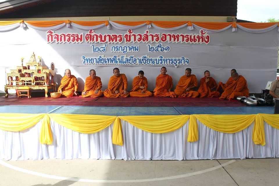 ท่านผู้รับใบอนุญาต และผู้อำนวยการ นำผู้บริหาร คณะครู อาจารย์ บุคลากร และนักเรียน นักศึกษา เข้าร่วมโครงการวันสำคัญทางศาสนา กิจกรรมตักบาตรข้าวสารอาหารแห้ง ณ วิทยาลัยเทคโนโลยีอาเซียนบริหารธุรกิจ (26 ก.ค.61) S:1