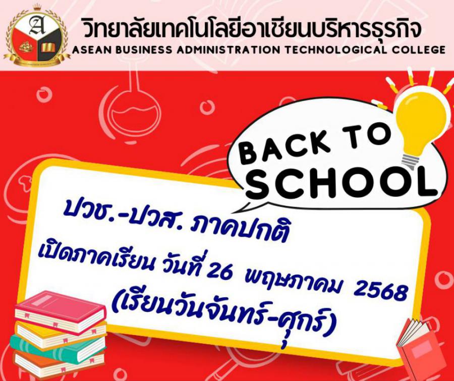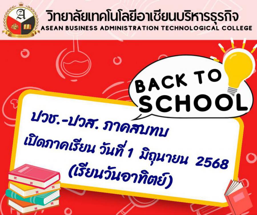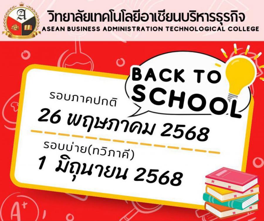 เตรียมพร้อมเปิดเทอมกันนะเด็กๆ รอบปกติ วันจันทร์ที่ 26 พฤษภาคม 2568 รอบสมทบ วันอาทิตย์ที่ 1 มิถุนายน 2568 #เปิดเทอม #เรียนดีมีความสุข #ABATC #วิทยาลัยเทคโนโลยีอาเซียนบริหารธุรกิจ ------------------------------------------------------ ???? เปิดรับสมัครออนไลน์ ???? พร้อมตอบโจทย์ ในทุก ๆ ความชอบและความถนัด ? ? เรียนจบ มีงานทำ สถานประกอบการรองรับ ? สามารถนำไปต่อยอดในระดับที่สูงกว่าได้ ? เปิดรับทุกเพศ ทุกวัย ทุกเชื้อชาติ ? เลือกเวลาเรียนได้ ? ทำงานก็เรียนได้ ระดับ ปวช. (หลักสูตร 3 ปี) ระดับ ปวส. (หลักสูตร 2 ปี) ระบบปกติ (รอบเช้า-รอบบ่าย) และ ระบบทวิภาคี 3 ประเภทวิชา 1. อุตสาหกรรมดิจิทัลและเทคโนโลยีสารสนเทศ 2. อุตสาหกรรมท่องเที่ยว 3. บริหารธุรกิจ ????ตั้งแต่วันนี้เป็นต้นไป ???? อยู่ที่ไหนก็สมัครได้ ????? การศึกษาที่ดีเริ่มได้ที่ A-BATC ? #DEK68 สนใจติดต่อ 038 026 400, 089 671 1444 สมัครออนไลน์ ได้ที่ลิงก์นี้ https://forms.gle/szK6t6KMip6PWBPJ8 S:0