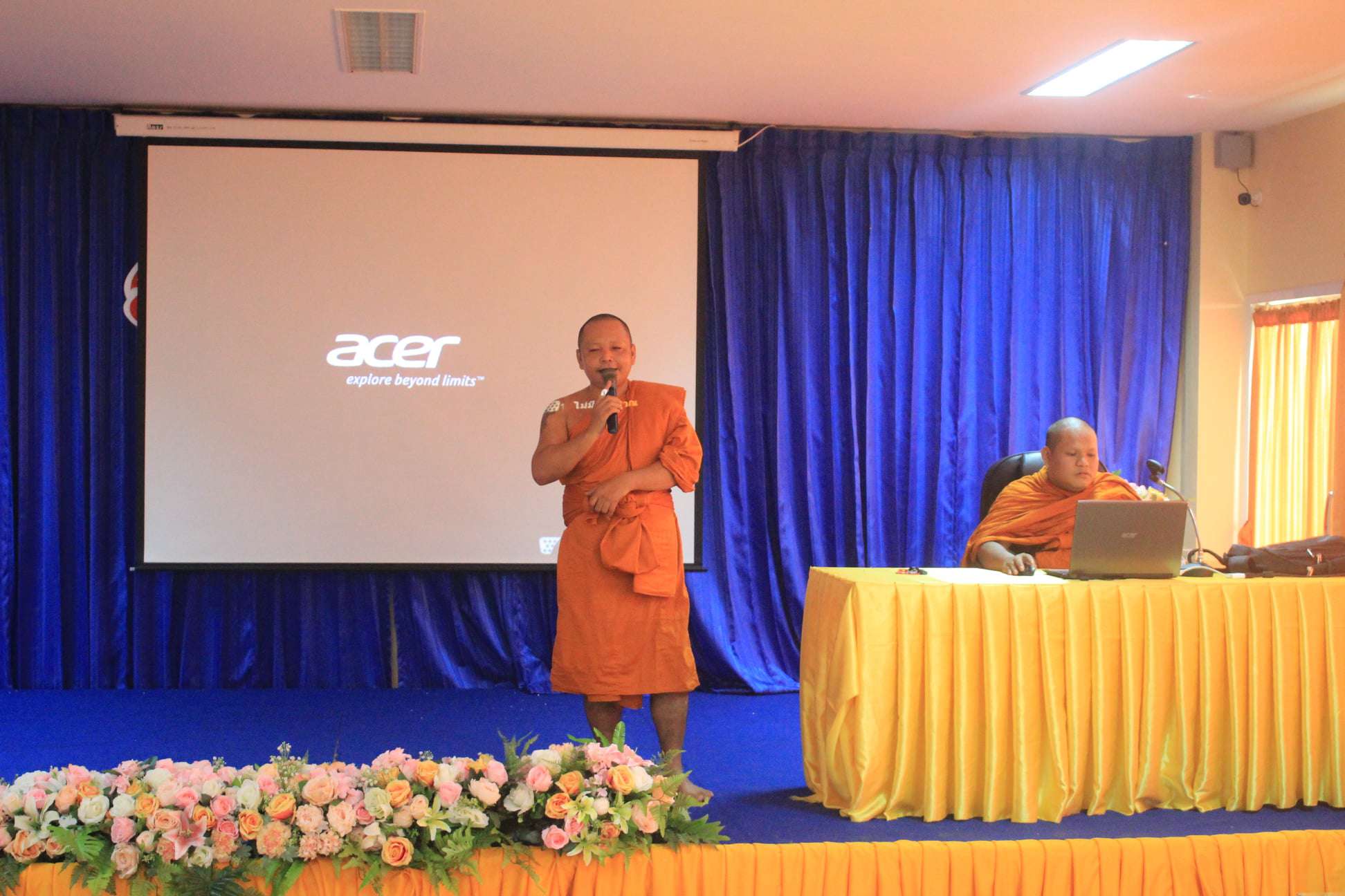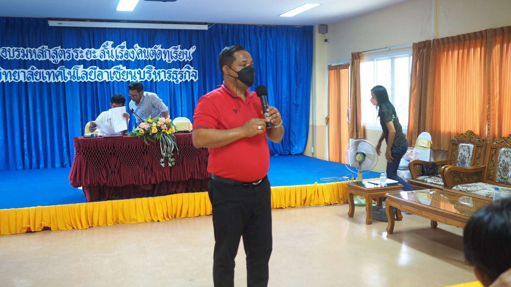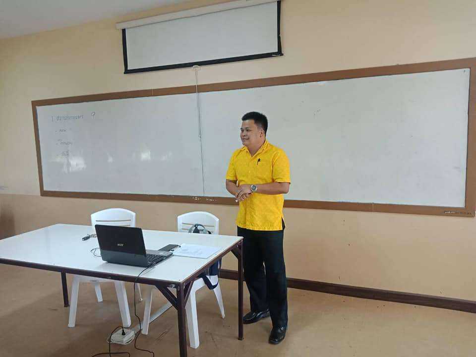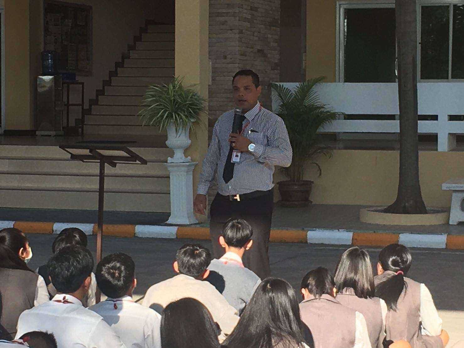อาจารย์ปราโมทย์ กล้าหาญ ผู้รับใบอนุญาต วิทยาลัยฯ เข้าร่วมกิจกรรมช่วงเช้าพบกับนักเรียน นักศึกษา กล่าวทักทายบอกเล่าทิศทางนโยบายการบริหารวิทยาลัยฯ และกล่าวให้พรแก่ลูกๆ อาเซียน ณ วิทยาลัยเทคโนโลยีิาเซียนบ
