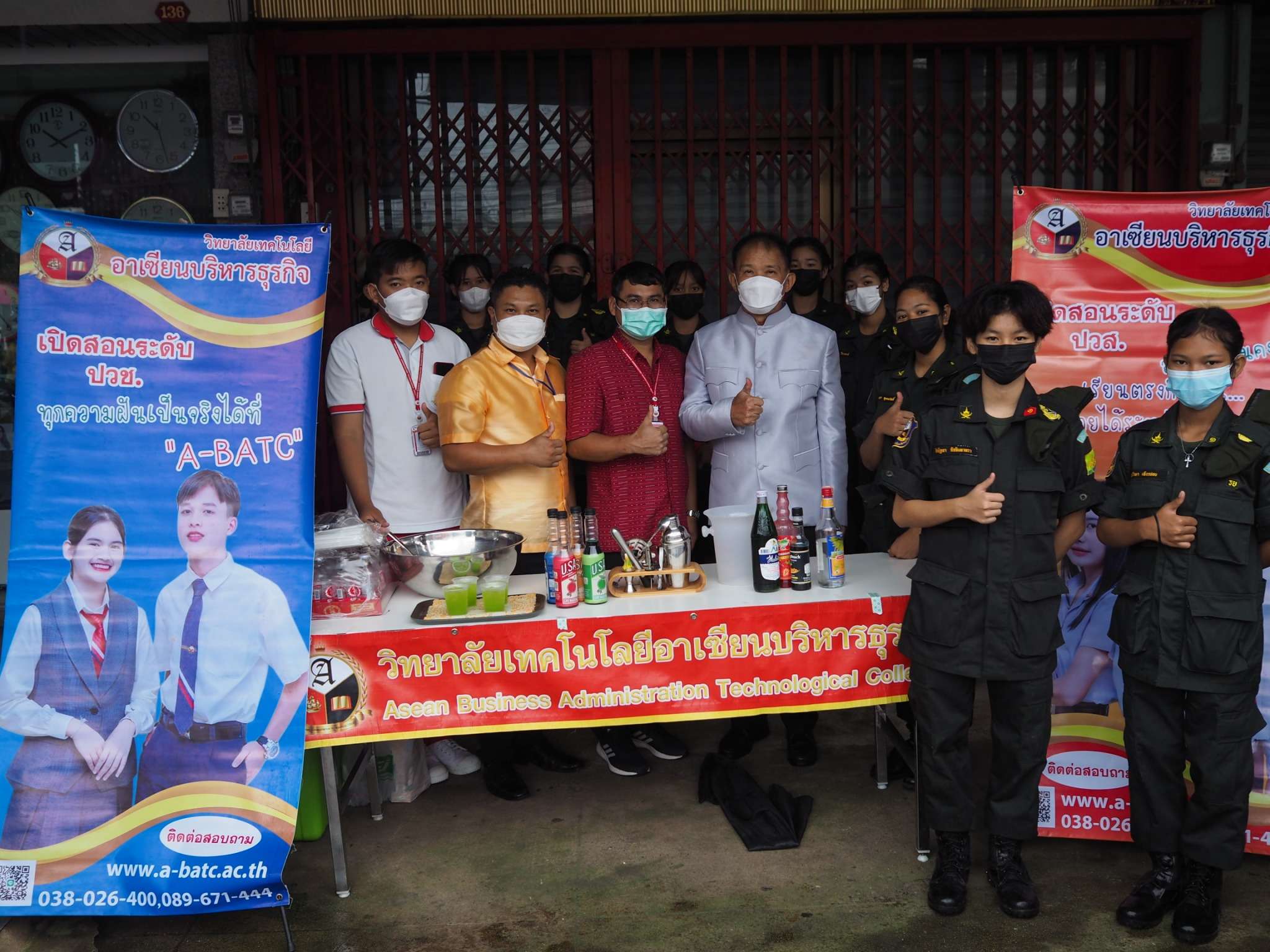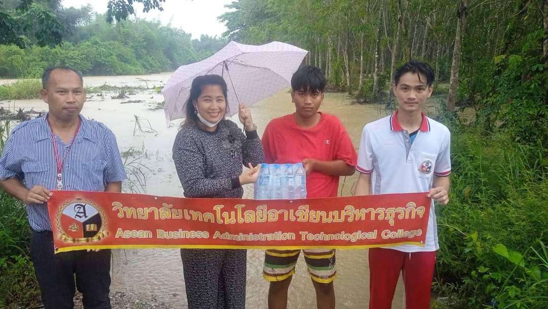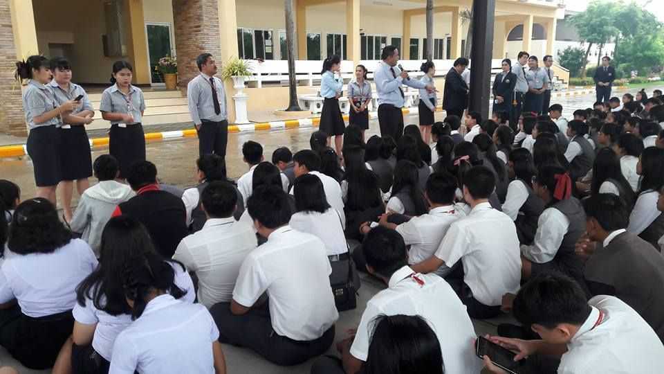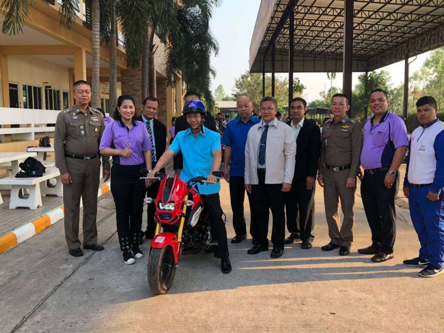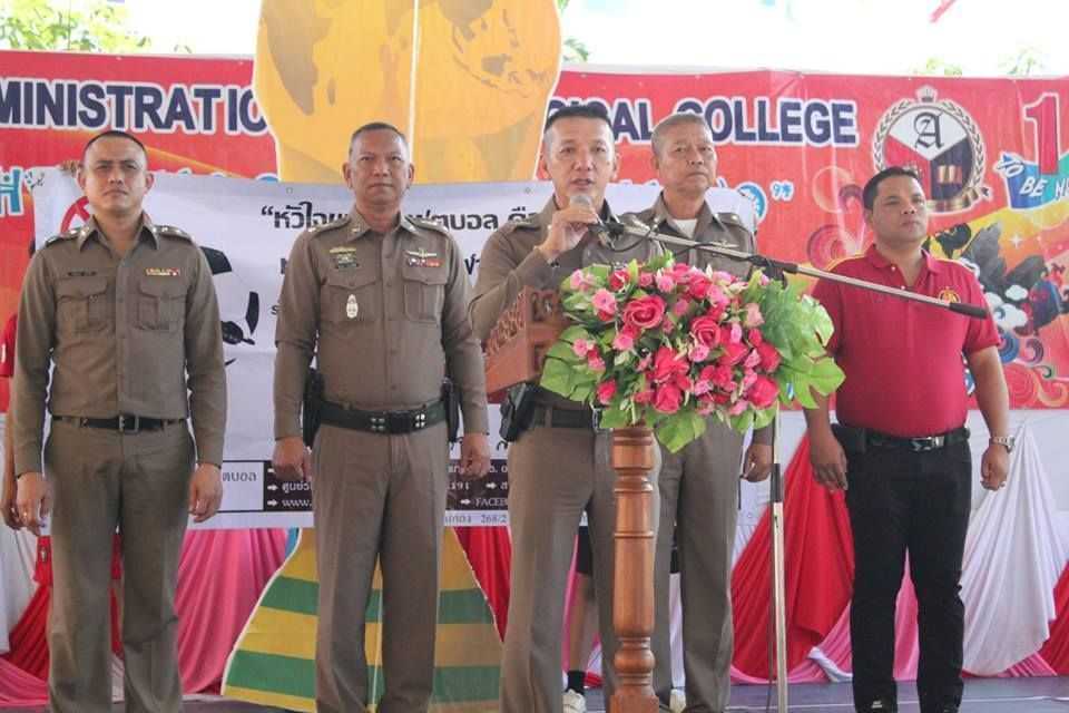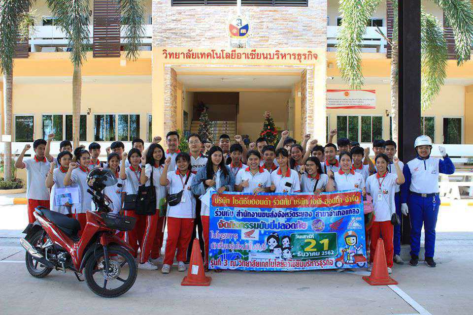 คณะผู้บริหารเข้าร่วมกิจกรรมช่วงเช้า พูดคุยให้กำลังใจในเรื่องการเรียนกับนักเรียน นักศึกษา และกล่าวรณรงค์เรื่องการขับขี่ปลอดภัย สวมหมวกนิรภัยใส่ใจในการเดินทาง ณ วิทยาลัยเทคโนโลยีอาเซียนบริหารธุรกิจ (14
