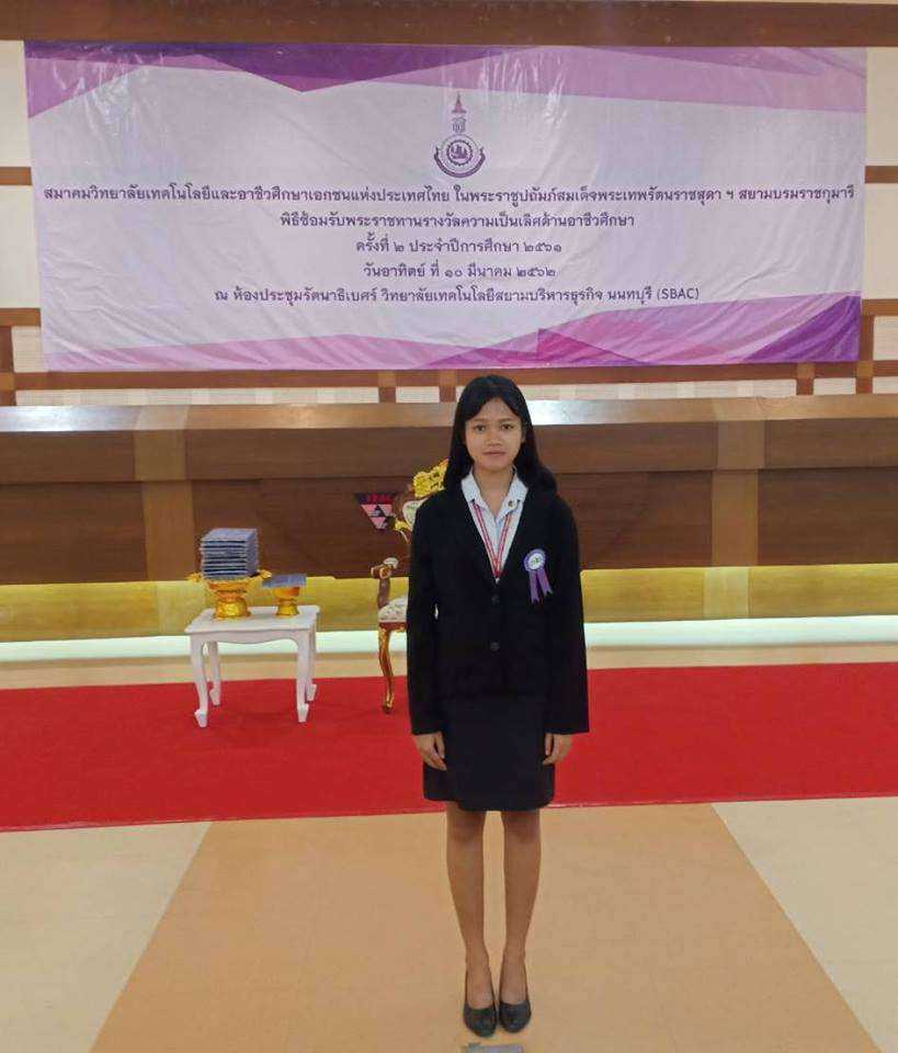 ผู้ผ่านการประกวดผลงานวิจัยและนวัตกรรมสื่อการเรียนการสอนระดับประเทศครั้งที่ 11 จาก สมาคมวิทยาลัยเทคโนโลยีและอาชีวศึกษาเอกชนแห่งประเทศไทย ณ มหาวิทยาลัยธนบุรี กรุงเทพฯในวันศุกร์ที่ 19 ตุลาคม 2561