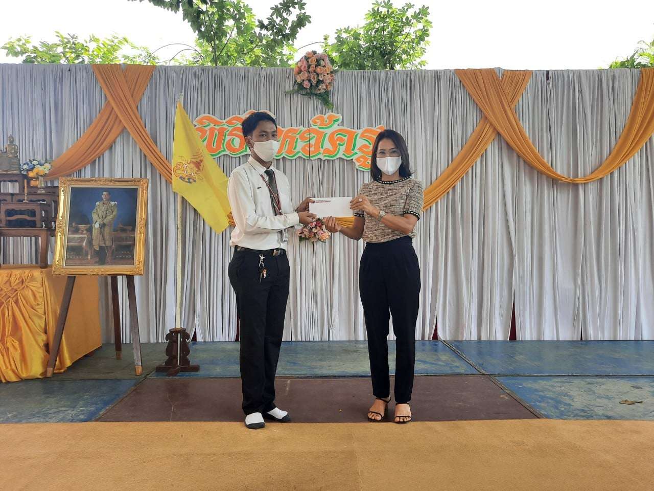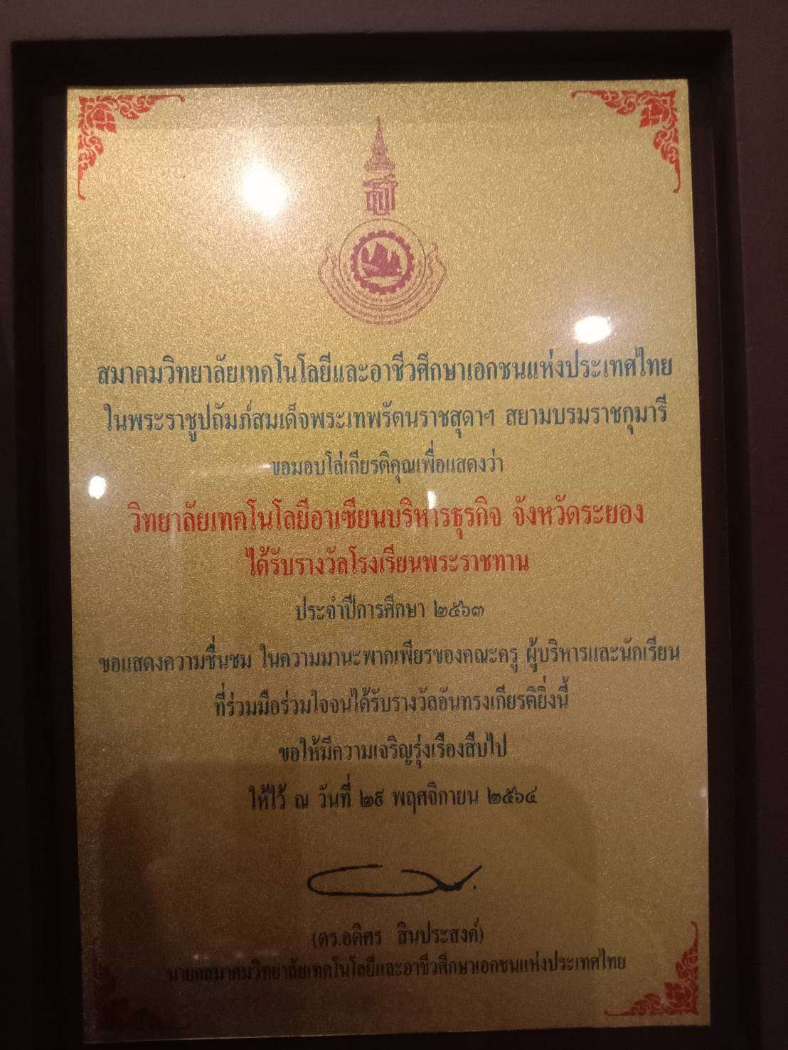 อาจารย์ปราโมทย์ กล้าหาญ ผู้รับใบอนุญาต วิทยาลัยเทคโนโลยีอาเซียนบริหารธุรกิจ เข้าร่วมงาน "สมเด็จพระเจ้าอยู่หัว ทรงพระกรุณาโปรดเกล้าโปรดกระหม่อม ให้มูลนิธิราชประชานุเคราะห์ ในพระบรมราชูปถัมภ์ จัดพิธีมอบ