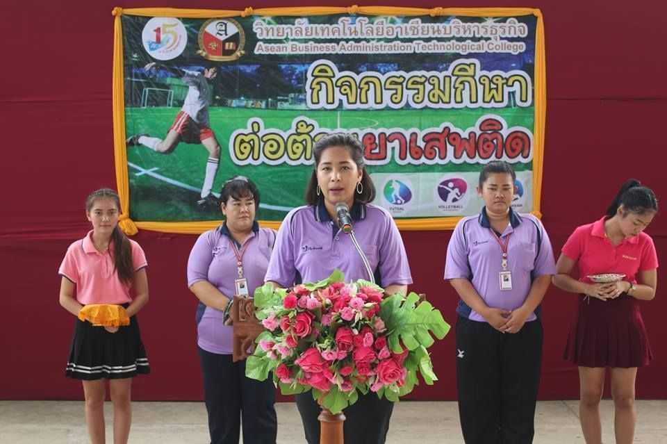 อาจารย์สุพรรณิกา ทิพพศรี กล้าหาญ ท่านผู้อำนวยการวิทยาลัยฯ กล่าวเปิดงานกิจกรรมต่อต้านยาเสพติด ประจำปีการศึกษา 2561 ณ วิทยาลัยเทคโนโลยีอาเซียนบริหารธุรกิจ (30 ส.ค. 61)